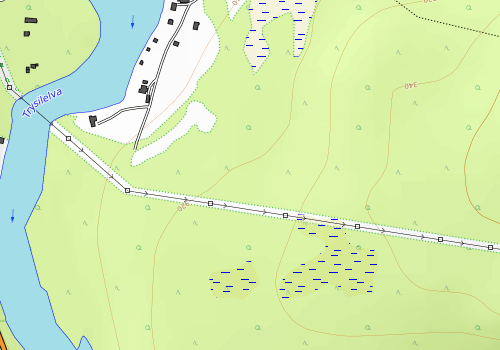 Jeg kjørte inn mot Lutnes på østsiden av Trysilelva og parkerte bilen langs veien like sør for sandtaket. Herfra syklet jeg forbi gårdene til veis ende hvorfra jeg innså at jeg egentlig kunne kjørt bilen til. Videre gikk det fin sti langs elva helt til jeg kom til Riksrøys 117 A som lå fint plassert på odden. Trysilelva skifter i følge kartet navn til Klarälven ved grensen før den vider seg ut og renner videre inn i Sverige. Stien gikk i vakker natur videre bort til riksrøys 118 A som også ble avlagt et besøk. Samme rute tilbake.