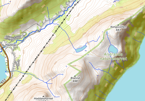 Vi gikk til Blåtind fra parkeringa ovanfor Haddal. Vidare fulgte vi fjellrekka nordaust mot Kongsvollen.