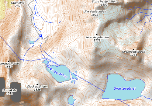 | Startpunkt | P-plass innerst i Venjedalen (625m) |