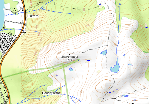 Fra Eiskrem merket sti opp til Lomtjønna. Derfra rundtur fra topp til topp. Så 7 ryper. Horja fant på å stikke av ved Eiskremsheia, og løp ned til bilen igjen hvor hun ble tatt vare på av snill beboer.