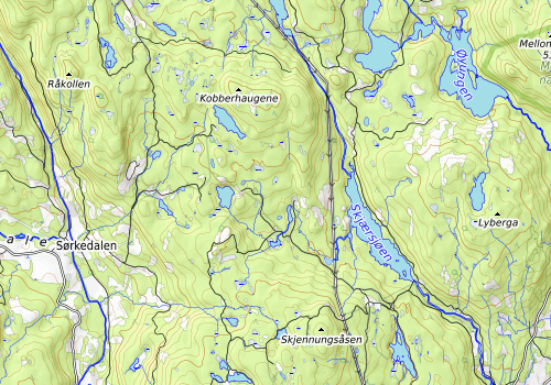 Syklet derfra litt over klokka ti, på vestsiden langs Pinabekken og opp brattbakken fra Lille Aklangen. Så passerte vi Ullevålseter, der vi tok til høyre mot Blankvannsbråten. Der tok vi trillestien mot Kobberhaugene.