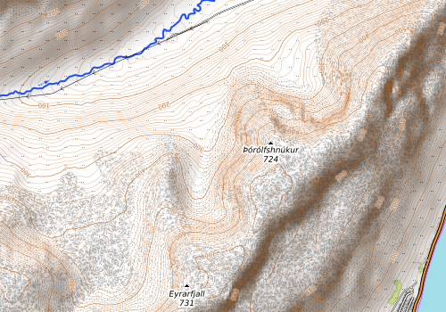Gikk fra byen Ísafjörður til landsbyen Hnífsdalur, deretter inn selve Hnífsdalur til fossene ved Heiðarskarð, og tilbake samme vei.
