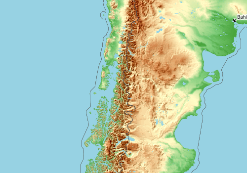 Har har vi fløyet rett over Torres del Paine uten å sett noen av fjellene der fordi de var rett under oss. Fjellet som ses midt i bildet er Monte Balmecada på 2250 moh som ligger ved fjorden Ultima Esperanza. Denne fjorden går innover nordvest for Puerto Natales. Litt merkelig retning på den fjorden.