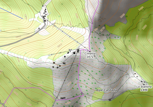 Da vi var oppe ved Cardada, fulgte vi anleggsveien som snirkler seg oppover. Ankom etterhvert Cimetta, som er en liten fortopp og flott utsiktspunkt. Deretter bar det videre oppover en bred sti opp til Cima della Trosa på 1869 moh, som er en del av Lepontine Alps. Her var det plassert et gigantisk kors av massivt stål, slik som er vanlig på topper i Alpene. Dette ble altså min første bestigning av en fjelltopp i Sveits. Jeg hadde vært i Alpene i dette landet med familien da jeg var liten, men da var vi ikke på noen topper.
