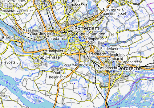 This fifth exploration of Rotterdam by bike brought me to the southeast of Rotterdam. I cycled first towards Schiedam in the west of Rotterdam. At Vijfsluizen, I turned left (into southern direction) and headed towards the Benelux-tunnel that connects to the south underneath the Nieuwe Maas. It's really cool that cyclists have their own tunnel, in fact! On the souther side, I biked by Pernis, before I came to the enormous traffic line, which leads out to Europoort in the west (train tracks plus two highways next to each other). I followed this traffic line a bit towards the west so that I could circle Hoogvliet on its western side. After all, this also brought me towards the Oude Maas, along which I had planned to cycle towards Dordrecht. Doing so, I enjoyed the nice biking paths along the river, mostly through lovely green land close to the river. Close to Portland, then, I also explored an artifical hill (Oude Maasheuvel) from which one has some nice views across the flat country (also the skyline of Rotterdam is visible from there). I then continued along the Oude Maas further into southeastern direction, before I came to Zwijndrecht. There, I crossed the river to its other, eastern side, to get to Dordrecht. I circled the old town of Dordrecht a little, also including a nice break, not skipping its northern-most tip, where the river Beneden Merwede (coming from the east) splits into Noord (continuing into the north, as the name says, and later connecting to the Nieuwe Maas) and into the Oude Maas (continuing into southwestern direction). From there, after the break, I returned to Rotterdam on a bike path, which runs for quite a bit in parallel to the highway A16. Closer to the city center, I also got to see the big stadion of Feyenoord.