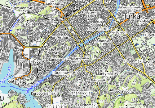 I had a few morning hours on this Saturday before heading back to Bergen, which I wished to use for a walk to see a bit of Turku. I started by crossing the Aura river at Kirjastosilta, heading to the Samppalinnanvuori vantage point for a first view across the city. From there, my next goal was the hill-top Luolavuori, hoping for some additional views from up there. While stepping up there, I also looked at the enormous water tower not far from the hill-top. On my way down from Luolavuori, I then passed by an impressive boulder, right north of the water tower, that apparently a glacier left there a long time ago. My next goal was then to cross the Aura river using the small ferry Föri, but when I got there, I learned that it was not operated, unfortunately. I thus decided to walk around (via Martinsilta). On the other side of Aura, I then stepped up to another small hill, passing by hotel Kakola (which, if I'm not mistaken, was a prison earlier). A bit further to the southwest, I then walked through a rather large complex at Kakola, which also hosts a spa (clearly noticable by the odor of chlorin! :-)). From the top of Kakola Funicular I could then watch it being operated towards the lower levels in the vicinity of Föri. I then headed further in southwestern direction with the goal to look at Åbo slott. While first getting a tiny bit stuck on the top of a cliff with no immediate way down, I quickly found a detour to continue my walk. Before eventually getting to Åbo slott, I passed by Marine Forum with quite a few interesting exhibits. Since I got closer to the time when I thought that I would have to head back, I thus just made a short visit to Åbo slott, before starting my walk back along the Aura river. This route back, on the northwestern side of Aura, was then very nice, offering a number of additional views. It did not takk to long, before I arrived at the train station to catch my train to the airport in Helsinki. Altogether a nice walk through some parts of Turku, which clearly gave my some impression of the town.