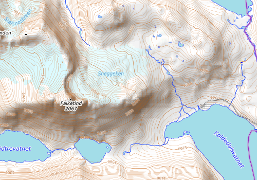 E, Lars og Gjermund L på tur. Greit forbi andrevatnet der snøfonna var så godt som borte. Gikk rett på Stølsnostind brefritt. Litt bratt opp sva i flanken opp til skaret. Lett klyving opp på Stølsnostind. Retur til skaret. Fin klyving opp på Midtre Stølsnostind. Omgikk hammere på høgre side etter svaene (som sikkert er lite trivelige å gå ned på vått føre - utsatt på begge sider). Stølsnostind tar seg veldig bra ut fra denne sida, nesten som ei hai-finne! Veldig greit å følge ryggen over den siste stølsnostinden (søre? ikke 2k) og videre mot Falketind. Herifra ser Østveggen på Falketind RÅ ut! Mye løst opp til Falketind! Mot slutten ble det brattere. Vi gikk rett mot toppen, og det ble derfor tiltagende bratt. Litt artig klyving. Et nydelig topp-platå! Utsikten er upåklagelig til Hurrungane. Tåka lå på ca 2300m. Når vi snudde nesa nedover gikk vi litt vestover fra toppen før vi tok ned i sida (mye mindre bratt enn veien vi gikk opp). Fulgte brekanten nedover så langt som mulig, dette gjorde returen mye mindre slitsom! Fikk også konstatert at morenemasse oppå is er VELDIG GLATT på turen! Retur ned til Morka-Koldedalen og ut denne var drøy, og noe kronglete å gå. Men totalt en kjempetur i ok ver!