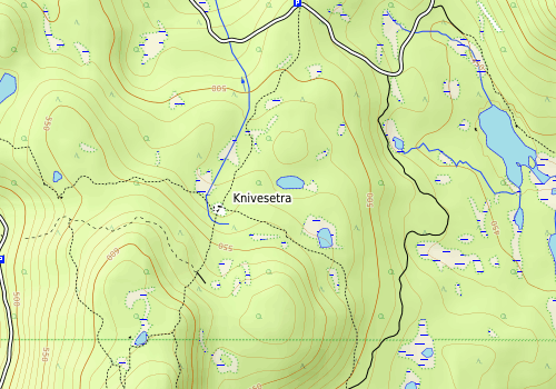 Parkerte langs veien oppover mot Snaukollen. Planen var å kombinere Snaukollen og Dypingskollen for å komplettere Øvre Eiker 100>pf lista. Fulgte veien et stykke før så tok av DNT-stien mot Snaukollen. Fin sti, ikke for mye merking. Holdt jevnt tempo oppover, den firbeinte gang fint på. Kom noe skurer innimellom men helt ok. Null sikt på toppen, gikk videre sørover mot en traktorvei her nede. Denne hadde god kvalitet før grusveien var god. Den påfølgende traktorveien var av det svært våte slaget, men så var de hullete skoa mine ikke akkurat tørre fra før heller da. Kom etterhvert ut på hovedveien og vurderte mulighetene opp til Dypningskollen. Valget falt på vestsiden og traktorveien her. Denne er derimot helt gjengrodd og helt håpløs å følge. Nå hølja det ned, relativt kjipt. Møtte på en mosegrodd hammer på 10 meter her inne også. Tok den firbeinte under armen og kløyvde opp her. Mot toppen var det bare tett, og toppunkt(ene) var ikke akkurat noe å skrive hjem om. Gikk ut østsiden og forøkte å finne traktorveien her nede. Denne har også grodd helt igjen. Det går derimot en traktorvei i god stand sørover. Mulig denne svinger over mot vest eller fortsetter mot Laupendene, jeg aner ikke. Videre gikk vi inn i et område hvor det hadde gått et stort steinskred, sannsynligvis fra istiden henhold til mose og geologien som visste seg. Såpeglatt og ikke noe særlig for den firbeinte. Prøvde å finne en vei ned, men dette var vanskelig. Måtte bare gå et stykke tilbake og herfra komme oss ned. Kom oss til sist på veien og fulgte denne helt frem til Flåputten hvor vi tok av vestover. Klarte tydeligvis ikke å følge denne traktorstien heller for plutselig var den vekk. Kompasskurs i tåka - funka som nogenlunde. Gadd ikke surre med Flaggnuten, ville bare til bilen og hjem til noe mat.