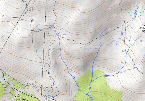Vi hadde på vei opp sett for oss en rute ned på snøen. Og den tok vi, 400 høydemeter unnagjort latterlig enkelt i snøen. Effektivt, skånsomt og utrolig morsomt