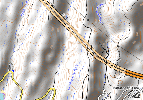 Jogge/fjelltur i soloppgang rundt Barranquillo de los Frrailes. Fra 127-bandet så er det tre små oppsteg opp mot grad 2 hvis en følger ryggen syd mot Montana de Meza, men alle kan nok enkelt omgås. For å komme opp på platået i nord klatra jeg opp en 5 meter høy renne som trolig var opp mot grad 3, hvordan denne unngås er jeg usikker på, men som det vises på bildet under kan det være en enklere renne/bakke lenger nord.