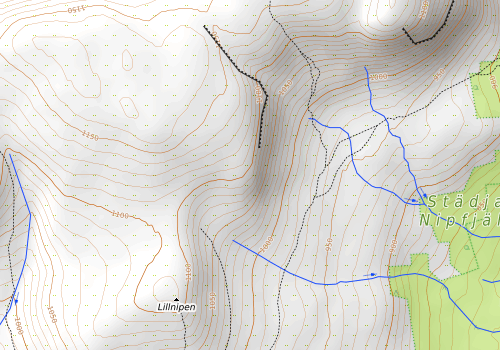 Jeg ble litt redd for at det kunne være høyere punkter innover Nipfjället, men kom etterpå over et topografisk kart for området, som viser at Mulen er høyeste punkt: