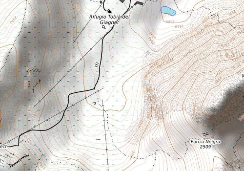 Vi parkerte ved stor plass på Alba, der en taubane tok oss opp til Ciampac. Her skiftet vi til stolheis, opp til Sella Brunec. Dette var kanskje en omvei i forhold til Colac, men da fikk vi nedover og bortover i stedet for noen hundre høydemeter oppover.