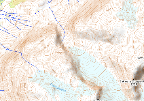 Flott tur i nydeleg vêr med Andrea og Frode til Storgrovhøene. Vi la i veg frå Ytterdalssætre retning Heimre Illåbrean, og det var uproblematisk å krysse Heimre Illåe på høgde 1275 der den deler seg i fleire småbekkar. Etter at vi hadde lagt Illågjelet bak oss, såg vi at det også hadde vore kurant å krysse elva oppe ved breen. Vidare la vi kursen vestover over eit par moreneryggar og inn på lettgåtte snøfonner oppover mot Storgrovhøe. Det var ei formidabel utsikt som åpenbara seg når vi kom opp på ryggen! Frå Fremste var det spesielt fin utsikt ned i Bøverdalen, og her trefte vi dei 3 einaste personane vi såg på denne turen. Lettgått på ryggen over til den 6 meter høgare Bakarste Storgrovhøe.