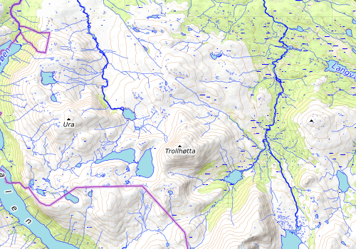 Planen var å ligge på toppen, men blanding av sterkvind og mørk ble det i stigningen. Startet fra teltplassen ca kl 10.00 over Trollhøtta ned til Rypfjellet. Turen ned har vært ypperlig på ski, som det meste av turen. Lunch ble det i skaret mellom Rypfjellet og Kufjellet ved et lite vann (Rypfjellvatnet). Stigningen opp til Kufjellet var ikke det helt store og gikk ganske så fort. Her var det ganske så sterk vind, tror det var her den tok mest. Jo nærmere jeg kom Ura så fjellet bare mer og mer overkommelig, brukte ikke lange tiden opp i skaret hvor jeg dumpet storsekken, husket å ta med gps'n for å få loggen noe som ikke er en selvfølge. De to Ura toppene var raskt unnagjort, det var da den geniale planen om å gå helt ned til bilen kom. Så det var ca 10 km i luftlinje ned, det ble noen lange km. Opprinnelige planen var å ligge i skaret ved Ura eller nede ved Rennslivattnet, noe jeg angrer litt på at jeg ikke gjorde. Men fikk en fin opplevelse når jeg passerte Trollhøtta på returen og lyset endret seg mot fjellet. De siste km ble denne dagen ble også i en liten lysring fra hodelykta. Vil rette en stor takk til de i hyttefeltet som har tatt seg bryet med å legge ned mange timers jobb på stien til hyttene. Takker også for rekkverk over demningen.