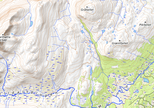 Vi var på Svarthetta 17.mai 2012, men da hadde ikke appen med alle Sør-Trøndelags kommunetopper kommet enda, og været var dårlig den gang så vi hadde null utsikt fra toppen, så da fant vi ut at det kunne være fint med en reprise 17. mai tur til Svarthetta. I Orkdal var det lavt skydekke og yr, men jo nærmere vi kom Nerskogen der vi startet fra, jo blåere ble himmelen. Fra Fv 512 tok vi av mot Sørøyåsen. Bomvei, 50 kr som betales med kort. Parkerte på Sørøyåsen parkering og fulgte skispor ned mot Minildalsmyran. Var bart noen steder og tendens til råtten snø, så hundene sank godt ned tidvis. Minilla var åpen med unntak av ett kort stykke der det fremdeles var snødekt is vi kunne krysse over. Gikk så over myrene og kom til elva Skrika som også var åpen. Vi gikk litt oppover for å se om det kunne være noen snøbroer, men måtte bite i det sure eple og vade over. Den er heldigvis ikke veldig dyp eller bred, men kan ikke skryte av vanntemperaturen. Det var ferske skispor som vi fulgte oppover, noen steder var det barmark så vi måtte bære skiene. For det meste veldig fint vær med sol fra nesten blå himmel, men tåka kom og gikk litt fra Skrikhøa og til vi kom til toppen. Gikk opp nordryggen og så sørover mot toppen. Fikk tidvis utsikt fra toppen mot fantastiske Trollheimen, tidvis lavt skydekke som la seg over toppen, men vindstille og varmt. Vi møtte tilsammen fem personer på turen som også gikk i 17. mai tog til Svarthetta:) Samme vei tilbake. Måtte ta det rolig i nedoverbakkene på hjemveien, tidvis gjennomslagsføre for hundene så måtte gå rolig, men vi kom oss ned til Minila etterhvert, og nå var isen der i ferd med å gå i oppløsning, men den holdt heldigvis akkurat for Minila er en mye større og dypere elv en Skrika så hadde ikke vært grei å vade over. Teis, Storm og Rune var med.
