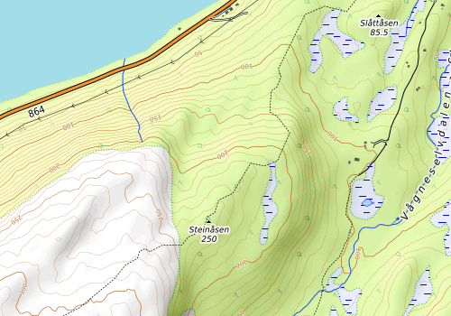 Dagens turmål ble Åsfjellet og kjørte mot Vågnes til Kulia parkering som ligger på høyre side av veien, skiltet med Kulia. Her er det stor parkeringsplass. Gikk så veien videre innover, forbi bommen. Gikk rett frem i første kryss og holdt så til høyre i neste der det er skiltet Kynnmobakken. Etter ett lite stykke gikk det en tydelig sti til høyre som jeg fulgte. Tidvis rødmerking her og tydelig sti. Fulgte rødmerking i stikryss. Da jeg kom opp på snaufjellet forlot jeg den tydelige stien og fulgte en mindre tydelig sti som etter hvert forsvant og gikk så i terrenget siste biten mot høyeste punkt på Åsfjellet. Lettgått terreng her, og kjempefin utsikt. En liten minivarde på toppen. Brukte 50 min til toppen. Gikk så bort til den store varden på Åsfjellet som ligger noen få hundre meter unna. Der er opp til denne varden at stien går selv om det ikke er høyeste punkt. Nøt utsikten litt, men var regnvær påvei, så ble ikke lange pausen før vi fortsatte på stien tilbake til bilen. Toalt 1 time og 40 min på tur. Teis var med og var veldig fornøyd med turen, passe bratt for han og masse spennende lukter.
