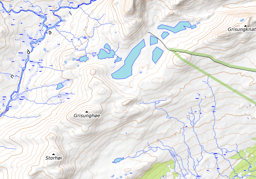 Påsketuren gikk fra E6-Nysetra-Grisungen-Lesja Fjellstyre hytte-Skredahøin. Komme ikke helt frem til Skredahøin, ble litt for langt, men ble en strålende tur uansett i fantastisk vær. Det er lite folk i dette området, selv om det er påske. Traff kun to hyggelige personer som var ute på en firedagers rundtur.