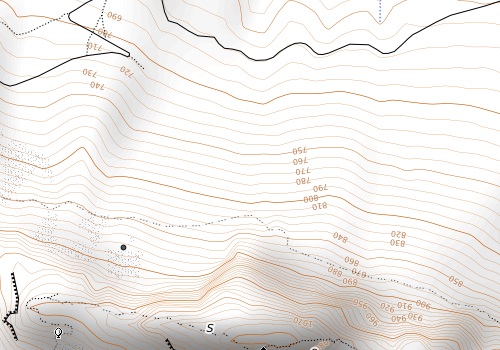 Fra fortet bra sti opp vestflanken av fjellet; fra knapt 900 moh temmelig bratt og løst inntil rødmerket sti