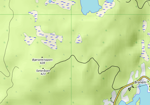 Etter litt spaning på aktuelle parkeringsplass tok jeg turen opp på Bjørsetknippen fra Benna (korteste vei sommers tid). Hovedmålet var trimposten litt nord for toppen der det er toppturpost i sommer. Fin tur også på sommers tid og i dag var været flott. Så flott at horder med svarte fluer holdt meg med selskap. Jogget derfor på returen..