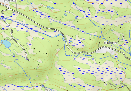 Det var OK føre langs scootersporene på vegen men oppe på myrene begynner snøen å bli veldig råtten. Ela er delvis åpen så tråkkemaskina har trolig kjørt sin site runde for sesongen. Hvis det ikke blir nattefrost eller etterfylling av snø i uka som kommer spøker det for godt skiføre i påska.