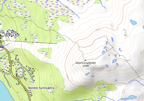 I mangel av brukbart skiføre ble det fottur til Skjervungfjell i steden. Tok med meg trugene, men de ble det ikke bruk for. Delvis bart med hardpakket snø i mellom. Rundt null grader men sterk vind gjorde at pausene ikke ble så lange. Det var vel ytterkanten av "Hilde" som var årsaken til vinden og den milde temperaturen.
