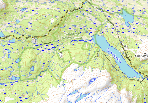 Tydeligvis lite krefter igjen etter gårsdagens tur. Fikk allikevel karret meg gjennom busker og kratt til en "førstebestigning" av den litt bortgjemte toppen Skardberga. På hjemturen på elven Lenna krysset en reinsdyr-flokk rett foran meg. Første gangen jeg har sett reinsdyr så langt ned mot Synnfjorden. Det var en reingjeter som jaget flokken. Han stoppet