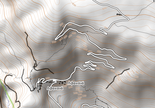 Vi startet med å gå østover og steg opp til den lille landsbyen Livaniana hvor vi fant et deilig vannhull, desverre med innpåslitne vepser. Etter noen øl/cola bar det videre oppover til vi var på høydene over nedre del av Aradenakløften. Vi fortsatte forbi to små kapeller og tok oss ned i kløften. Den fulgte vi oppover på grei sti. Litt før bilbrua som krysser kløften er det et parti med to stivalg. Venstre sti er lettest og bredest, men noe eksponert om man er ustø. Fortsetter man innover kløften kommer man til noen lange metallstier som tar deg opp forbi noen store steiner. Deretter i ur til man møter det andre alternativet. Vi tok kløften opp, og "den brede sti" ned igjen.