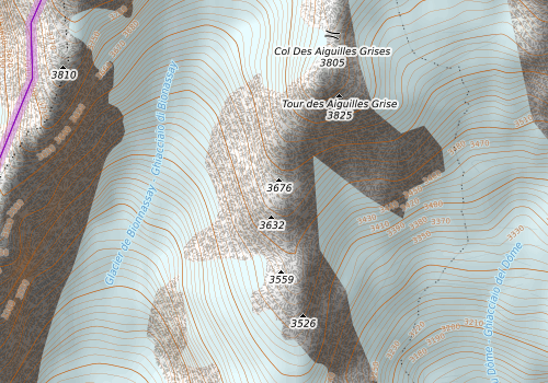 The Aiguille de Bionnassay is an elegant peak lying at the western end of the Mont Blanc massif, and like the Lyskamm traverse is known for its narrow snow ridges – in particular the “standard” route up the east ridge, accessed from the Gonella hut on the Italian side of the mountain. Since most snowy routes were in excellent condition this summer it seemed like a good choice to finish off my month in the Alps, so we headed there after spending a night in Chamonix after coming back from the Ecrins. We had a somewhat delayed start because of long queues to get through the Mont Blanc tunnel into Courmayeaur, so by the time we had made it up the Val Veny road as far as we could get to La Visaille it was around midday and we still had at least 5 hours of walking ahead of us to get to the hut. We gave the Gonella hut a call to let them know that we were definitely coming but there was a small chance we might arrive late for dinner!