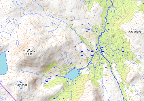 Då eg var på Raudfjellet i vår tenkte eg at eg måtte få meg ein tur på Rindhatten der den såg så flott ut lenger inne i dalen. I dag var dagen. Glad som eg er i kart, hadde eg planlagt å raske med meg litt meir også, sidan eg var i området. På kart er livet enkelt.