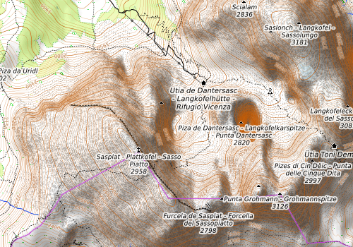 Plattkofel, eller Sasso Piatto, er den eneste av de store toppene i Sassolungo-massivet tilgjengelig for folk flest. Vi snakker egentlig om midttoppen og nordvest-toppen. Resten av fjellene i dette massivet krever klatring, om enn ikke så vanskelig teknisk. Selv et så kvasst toppmassiv som Cinque Dita (Fünffingerspitze) skal visstnok kunne bestiges uten vanskeligere klatring enn på tre-tallet. Anbefaler klatrefører for området, da det er et utall spir og skar å gå seg vill i.