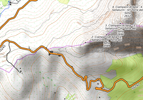 NB! På kartet i den østeriske kartserien "Kompass" står La Locomotiva oppført med høyden 2533m. Dette er feil, da det er høyden på Sella Tower nr 1.