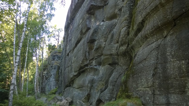 Meget lett tilgjengelig klatrefelt med et tjuetalls bolta ruter på rundt 6-tallet. Veggen er vestvendt, og vil således ligge i skyggen fram til ett-to-tida på en vanlig sommerdag. En del trær sperrer for utsikten fra veien, og vica versa:
