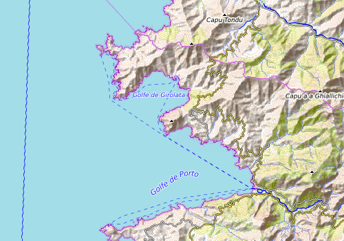 Nås på sti fra Bocca a Croce via Punta Castellacciu (589m). Ett klyvepunkt.