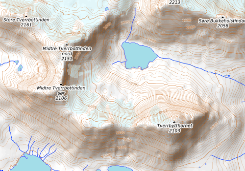 Været var ikke helt på vår side denne gangen heller. Regn i lavere strøk og snø på toppene. Vi ruslet innover Visdalen og rundet under hammeren som kommer ned fra Tverrbytthornet. Det var litt glatt på steinene og snøen som lå på nordøstsiden av Tverrbytthornet var for hard og bratt til å gå på uten stegjern. Vi måtte da slippe oss litt ned mot elven og krysset den ca en kilometer fra utløpet. Gikk inn på nordsiden av vannet og fulgte en morenerygg oppover som startet nesten inne ved elva. Den var fast og fin med smågrus/sand som var grei å gå på så lenge den varte. Rundet så skrått oppover vestflanken før vi kom opp på ryggen som leder opp til Store Bukkeholstinden. Føret bar preg av glatt ur og snø som dekte deler av den.