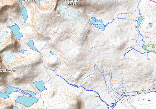 Hadde gått ryggtraversen fra storstygge-svånnåtinden til Store Langvasstinden dagen før, så nå måtte vi finne en litt kortere tur for å komme hjem i skjebelig tid. Lå i telt ved det lille vannet nord for innaste svånnåkollen (32v 0512643 6906693). Vi krysset bekken ved utløpet av 1500 vannet og fortsatte i steinura opp mot endemorenen på breen. Vi hadde lest flere turrapporten om at det skulle være veldig løs steinur oppover, så vi var skeptiske men bestemte oss for å prøve. Vi gikk mot Bruri litt nedenom endemorenen og så den markerte hammeren som ligger omtrent midt på eggen og som flere har skrevet om. Det var ett markert grønnaktig parti som gikk oppover litt til høyre for denne hammeren, se bildet under. Det så ganske greit ut på avstand så vi bestemte oss for å prøve der. Det var ett stykke med løs ur og store stein før vi kom opp til det grønne området som var det verste stykket på turen opp. Fra det grønne området og videre til toppen gikk det veldig greit. Var antydninger til at folk hadde gått her før flere steder. Brukte ca 1,5 time fra teltet til toppen. Liten varde og kjempefin utsikt. Samme vei tilbake. Stoppet ved teltplassen for å pakke sammen teltet før vi fortsatte mot Snøheim for å rekke bussen klokka fire. Brukte ca 1,5 time fra teltplassen og til Snøheim. Rakk bussen med god margin og var veldig fornøyd med helga, to kjempefine dager i Dovrefjell og maks heldige med været:)