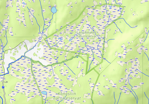 Utfordringen nå var å finne igjen løypetraseen og det skulle vise seg å bli vanskelig. Vi holdt nok litt for langt nord og endte opp med bratte heng med trær, busker og bekker, men kom oss til slutt ned på de oppkjørte løypene.