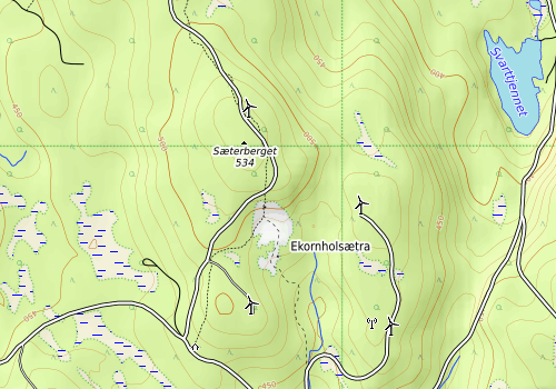 Jeg hadde lest 500fjell sin fine rapport om oppkjørte løyper til topps fra parkeringa ved kommunekoia, men dette stemte dessverre ikke lengre. Vi kjørte til Sand og tok så rv 181 et kort stykke til Sandbekkveien (tror det var de den heter) første til venstre etter å ha kjørt over Sandbekken. Dette er en bomvei, men det var ikke flere innbetalingskonvolutter der så de gikk glipp av den inntekten. Fulgte veien helt opp til Kommunekoia der det var en parkeringsplass samt masse tømmer. Vi så ikke noe til de oppkjørte løypene 500fjell fulgte i 2010, så bestemte oss for å følge sommerløypa opp til Ekornholsætra for å se om det var noen løyper der. Det sto skilt til Ekornholsætra 3 km 100 m før parkeringsplassen. Her hadde det kjørt en stor skogsmaskin så vi gikk til fotts i de stygge sporene den hadde laget til vi så at stien forsvant i en annen retning. Da spente vi på oss skiene og forsøket å følge de blå merkene som hang i trærne. Ikke alltid like lett å se, men vi kom oss til Ekornholsætra etter hvert. Her var det i hvert fall en skiløper som hadde gått selv om vi ikke så noe til de oppkjørte sporene vi håpte på. Vi satte kursen mot Stormyra og da kom vi over skispor igjen som fulgte en rødmerket løype som førte oss til en stor fin gapahuk og kjempefine oppkjørte løyper. Da var det bare å følge løypa til 500fjell, det vil si ta til høyre ved gapahuken og til venstre i to kryss, det siste var skiltet mot Ursknappen og var en skuterløype. Da vi passerte Furumyrkoia syntes vi løypa gikk vell langt nedover og ikke i rett retning, så da var det bare å innse at vi måtte ut i løssnøen med markaskiene igjen. Ingrid var ikke så gira på å baske i snøen for å komme til topps (ca 800m i luftlinje til toppen), så hun ventet nede ved Furumyrkoia mens jeg strevde meg oppover. Den første biten var grei for her var det tydelig ryddet løype, men når jeg kom opp på myra så gikk jeg på gpsen mot toppen. Gikk opp ryggen fra nordvest da det var for bratt fra øst der jeg kom fra. Her var det også blåmerker. Ikke så mye utsikt å skryte av men postkasse med bok og stort skilt. Brukte tre timer til toppen. Samme vei tilbake til Gapahuken, men her bestemte vi oss for å følge oppkjørt løype videre istedenfor å gå til Ekornholsætra da ett lokalt par sa at denne løypa gikk nesten helt ned til kommunekoia. Dette viste seg å ikke stemme helt, den stoppet ved det jeg har kalt Rabben parkering. Her var det tre kilometer i luftlinje igjen til bilen. Anbefaler å kjøre til denne istedenfor kommunekoia da det er mye kortere å gå samt fine oppkjørte løyper. Balrostjennvegen heter veien, men aner ikke hvor den starter. Vi gikk på ski langs veien i ca 2 km, heldigvis var det mye snø og lite grus. Den siste kilometeren fra Svarttjernet til Kommunekoia var det ubrøyta vei, så her likte skiene våre seg mye bedre. Brukte 4,5 timer totalt på turen. Ingrid var med.