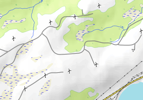 i forbindelse med utbyggingen av vindmølleparken er det anlagt vei opp til toppen av Jøvikhumpen. Veien starter til høyre for kontrollhuset som ligger ved hovedveien. Det er en bom i starten av veien, men jeg er usikker på om den er stengt på noen tidspunkt. Den var iallefall åpen da jeg var der. Nå lå det fremdeles en del snø på veien, så jeg spente på meg skiene og ruslet opp.