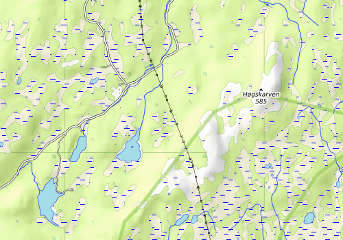 Kjørte bomveien fra gyllråa opp til bommen ved svartvatnet hvor vi parkerte og fulgte veien videre til fots. 50 meter etter høyspentlinjen krysser veien tok vi av og fulgte linjen opp til høyde 565 for å få en runde ut av turen. Fulgte høydedraget ganske rett mot Høgskarven, det ble ganske kupert noen plasser.