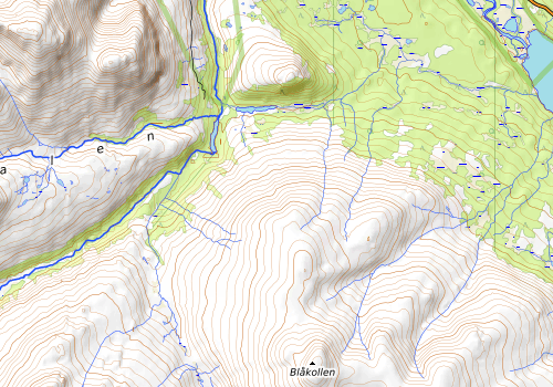 Jeg og Teis kom kjørende fra Hjerkinn og parkerte ved Straumbu (andre skilt mot Bjørnhollia langs Rv 27, første skiltet er parkeringa der grusveien mot Bjørnhollia går). Kjempestor parkeringsplass her. Fulgte den merkede stien mot Bjørnhollia til der stien mot Eldåbu tar av, ved brua noen få hundre meter fra Bjørnhollia. Fulgte så stien mot Eldåbu oppover Blåkollen. Etter å ha kommet godt opp i høyden tok jeg etter hvert av fra stien og gikk straka vegen mot toppen. Lettgått terreng, og bare de siste 6-700 meterne at det var steinur å traske i og det ble litt brattere. Brukte 3,5 time til toppen inkludert en matpause på veien. Jeg fant boksen med boka i varden, men boksen var ødelagt og blyanten hadde falt ut og lå langt inne i varden, jeg fikk ikke tak i den. Jeg hadde selvsagt ikke med meg hverken penn eller blyant så fikk ikke skrevet meg inn i boka. Vi skulle overnatte i ei hytte ved fremre Vulutjønna og fortsatte derfor mot sør og gikk ned mot Fremre Vulutjønn. Fint terreng å gå i her også når en kommer ned fra steinura som er på toppen. Møtte Rune og Shogun på vei ned, de hadde vært på toppen litt før oss. Mikael, Morten, Roger og Ludvik ventet i hytta de hadde leid for å gå på rypejakt i helga. Neste dag gikk vi til Eldåbu med lang bålpause i det fine været før jeg, Rune, Shogun og Teis gikk ned til Eldåsætera der Rune hadde parkert bilen sin på en stor fin parkeringsplass der stien til Eldåbu starter. Kjørte så grusvei til Venåsen (bomvei 60 eller 70 kr som Rune betalte på vei opp til Eldåsæter) som vi fulgte til Venabygd der vi tok til venstre mot Folldal for å komme tilbake til Straumbu og bilen min.