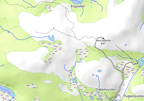 Etter at steinen på punktet var besøkt la jeg vegen via Vennafjellet, over Grøtemsfjellet (er toppunktet her på PB rett plassert...?) og ned til bilen.