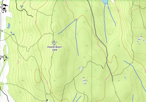 Parkering ved gartneriet på Hasler/Dal. Gikk traktorveien til sommerfjøset og tok av på stien opp i skogen der. Ved stikrysset på Svinåsen tok vi av mot Kåret og videre mot Ålborgseter. Krysset Svangerudveien der og fortsatte stien forbi kyssesteinen. Det er sikkert obligatorisk å kysse sin partner når man kommer til denne steinen, men når kona ikke er med så må Kimi til pers og han er ikke vond å be. Derfra bar det videre og opp til tårnet. Turte som vanlig ikke å gå opp i tårnet selv om trinnet som hadde knekt i fjor nå var reparert.