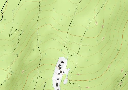 Parkering på parkeringsplassen ved rundkjøringa på toppen av boligfeltet i Holkebylia. Fine og godt merkede stier herfra. Et lite parti på skogsvei et stykke på vei oppover. Der var det både kuer og sauer. Har møtt mye sau på tur, men tror aldri jeg har vært borti så innpåslitne som disse her. Selv om jeg hadde Kimi bånd så kom de bort til oss og selv om vi ignorerte dem så fulgte de etter oss. Kanskje de er veldig vant til folk og bruker å få godsaker her? Ble til slutt kvitt dem og nådde toppen alene.