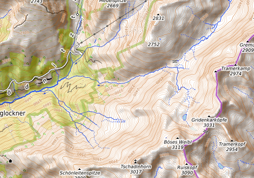 We started from Lucknerhaus and went first via Nigglalm to Oberfigeralm. From there, we continued into the valley of the Peischlachbach, heading for Peischlachtörl at 2484m. There, we turned right (into southern direction) and started the actual ascent to the Boeses Weibl. The ridge leads up to the Tschadinsattel, from which it only is several minutes to the top of the Boeses Weibl. Unfortunately, we could not reach the top, while the weather was still OK---so we had to imagine the great views from the top of this mountain. We then descended along the same route until we came to a place (on the ridge), where a path to the west, towards Tschadinalm, separates (at about 2760m sea-level). We then continued towards Tschadinalm (at about 2325m sea-level), before turning right again and connecting to Matoitzalm in Peischlachbachtal, where we met the path, again, which we had taken up from Lucknerhaus. From there, we returned as we came up there, earlier. All in all, this hike up Boeses Weibl is quite doable, even though one get into high apline regions (Boeses Weibl is 3119m above the sea). Better weather would have increased the pleasure to do this hike even more! :-)