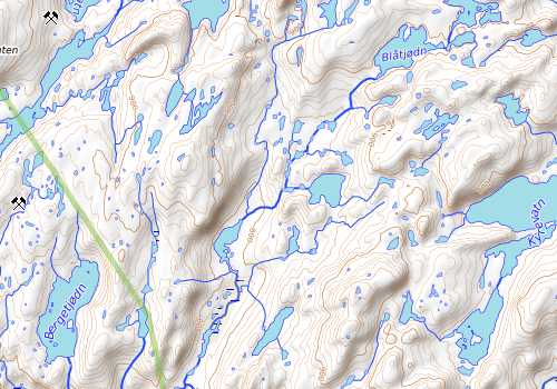 Kjørte opp til Knaben og parkerte ved Parkering Knaben Kapell, ved en oppsettingsplass for campingvogner/campingbiler. Gikk noen få meter tilbake langs veien til krysset og tok grusveien som går oppover til høyre. Her er det skilt med turløype. Hold til venstre opp bakken ikke veien til høyre over broa. I enden av veien er ett hus og her starter merket løype til venstre for huset. Litt opp i lia greide jeg å gå feil da jeg ikke fikk med meg at det var ett stikryss her og fulgte sti mot Knaben gruver ett stykke før jeg skjønte at det var feil og snudde og gikk tilbake og fant riktig sti videre. Litt dårlig merking her og der så måtte være litt konsentrert for å finne rett vei. Mor var ikke helt i slag så jeg forlot de ganske kjapt for å ha sjans til å komme på begge de planlagte toppene uten at de måtte vente for lenge, de skulle gå mot Oddevasshei så langt som de orket. Jeg greide å gå feil enda en gang da jeg ikke fikk med meg enda ett stiskille, så gikk ned til elva og snudde der og gikk tilbake i terrenget og fant stien igen etterhvert, derav den fine u-en på sporet. Jeg kunne ha fortsatt denne veien også, men hadde lest rapport fra Ole Petter som hadde vansker med å krysse ei elv så tok ikke sjanse på det. Fulgte stien mot knabenrøysa til sørenden av det østligste vannet Holevoilan. Lettgått opp til toppen herfra, ingen problem å finne god vei opp selv om det ikke er sti. Stor varde og fin utsikt. Brukte to timer og 15 min til toppen. Kort pause før jeg gikk korteste vei ned til Knabenrøysa der jeg kom inn igjen på stien jeg gikk fra Knaben. Her er det stiskille og jeg fulgte skilt mot Ljosland. Rødmerket sti og lettgått terreng. Fulgte stien forbi Kyrevannene og ett stykke videre før jeg måtte forlate stien igjen for å komme til Venehei. Litt småkupert, men lettgodt og lett å finne en rute opp til toppen av Venehei. Stor varde og fin utsikt her også. Var på toppen etter 4,5 timer på tur. Siden jeg ikke skulle til Oddevasshei igjen tok jeg en mer direkte rute tilbake mot Knaben, ingen stier å følge men veldig lettgodt terreng og fint å gå. Kom inn på stien igjen ved vann 787, og ringte min mor for å høre hvor de var. De hadde kommet tilbake til bilen og hadde fulgt stien på nordsiden av Finndalsvannet, så da gjorde jeg det sammen. Det var heldigvis ingen problem å krysse elver her i dag, og i vestenden av Finndalsvannet går stien over til å bli vei. Fulgte veien til godt merket kryss der jeg fulgte skiltet mot Knaben landhandel og kom inn på løypa der jeg gikk om morgenen. Mor og Asbjørn ventet ved bilen, de hadde snudd før Oddevasshei, men var heldigvis veldig fornøyd med turen og terrenget selv om de ikke kom helt til topps og måtte vente litt på meg. Veldig oversiktlig og lettgått terreng her på Knaben, kommer gjerne tilbake. Brukte totalt litt over sju timer på turen, mor og Asbjørn var med på starten av turen.