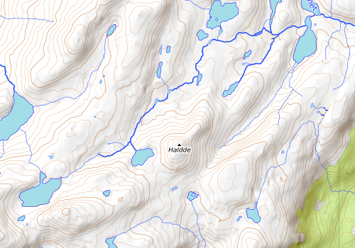 Neste dag gikk jeg til Store Haldi, mens Siri for det meste slappet av på hytta etter gårdsdagens tur opp til hytta. Jeg gikk på truger. Fra hytta gikk jeg ned mot vann 761 og gikk på sørsiden av det og oppover til vann 833. Det var is på vannet, men stolte ikke på at den var tykk nok til å holde meg så holdt meg på land og gikk opp ryggen på nordsiden av vannet. Jeg fulgte så ryggen oppover. Var litt lite snø noen steder, men for det meste gikk det greit å komme seg opp uten å være borti for mye stein. Stor varde på toppen og kjempefin utsikt til alle kanter og kjempeflott lys. Jeg brukte ca to timer til toppen. Blåste surt og ikke så god tid før mørket kom siden jeg og Siri hadde kost oss med lang frokost på hytta så kom ikke avgårde før i 11-tiden. Samme vei ned fra toppen, men da jeg kom til vann 833 så fulgte jeg dalen nedover litt for så at der var det åpen bekk så ville ta med vann opp til hytta, det nærmeste drikkevannet er nemlig vann 761 og der var det is. Etter å ha fylt opp camelbacken ett par drikkeflasker jeg hadde med, så fulgte jeg noen snørenner opp til høyden over vann 761 og gikk opp til Halde samme vei som jeg kom ned. Brukte totalt 3 timer og 40 minutt på turen som var på 10,6 km. Det begynte å mørkne akkurat da jeg kom til hytta. Siri hadde hatt besøk av ett par mannfolk som var på dagstur opp til hytta mens jeg var vekk. Koste oss med yatzy, lesing og snop i hytta før vi tok en tidlig kveld.