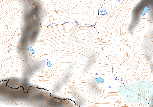 I en sving rett før der vannkanalen går over en akvadukt, kommer bekken ned fra breen. Herfra går en sti oppover, til brekanten. Så et stykke på bre, der stegjern var nødvendig. Vi gikk i tau, men det var egentlig ikke nødvendig.