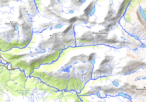 Litt mildere i været, så da kan det bli levelig også i fjellet. Startet fra Heggøya p-plass ca 0830, allerede 21 grader og skyfritt. Skyen skulle komme utpå dagen ifg yr, og det stemte. Jevn stigning etter traktorvei og etterhvert sti, før det flatet ut. Fint å løpe innover dalen, men utydelig sti enkelte steder. Etter tips fra Ullis (Kristin Ulleland) tok jeg av fra stien retning Storbotn et lite stykke før setrene for å unngå baksing i kjerr og kratt langs stien nordover langs Botnelva. Et meget godt tips, takk. Fylling av vann i Botnelva, før kursen ble satt mot dagens første smultring; Botnnebba. Fant en fin trasè oppover ura, toppen ble nådd etter totalt tre timer fra bilen. Bilder og mat, før Rognnebba skulle besøkes. Veien sier seg selv, men oppunder toppen er det partier med løs stein/grus. Lengre pause på toppen med niste og sløving i sola. Ned i til dels grov ur retning Litlnebba. Gikk utpå kanten mot Romådalen for å kanskje finne et sted å komme seg ned på, men det så lite fristende ut. Opp og over Litlnebba, og videre langs kanten mot dalen. Fant ei bratt renne med mose og stein. Videre ned gjennom kratt til myra i dalbunnen. Herfra lett løping på myra og videre på gammelstien via setrene og videre til bilen. Ikke et menneske å se, ei heller innsekt. Noen klegg måtte bøte med livet, men fluene var fraværende. Flott og lang tur, knappe 10 timer totalt med pauser.