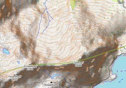 Etter langt om lenge tok vi fatt på returen. Det var ikke mange igjen utenfor Totalphütte da vi kom ned igjen hit. Dette var bare et tegn på at de fleste vi hadde sett her tidligere i dag bare hadde hatt som mål å gå opp til hytten for å drikke, for å så gå ned igjen. Noen befant seg selvsagt også inne på hytten da de sikkert skulle overnatte her.