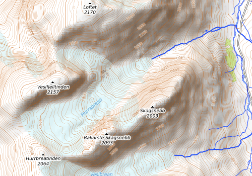 Påsketur rundt Hurrbrean med Iver og Andrea. Det var relativt kaldt når vi starta frå Geitsetra, men fekk kjapt varmen oppover. Dette var randonè-debut for meg og Andrea, så vi var litt spente på utstyret. Vel oppe på Veslfjelltind var både vêr og utsikt i toppklasse. Litt spontant bestemte vi oss for å legge returen om Bakarste Skagsnebb. Kom greit opp til skaret vest for denne - fantastisk utsikt her! Vi tok på stegjern i skaret, og dei kom godt med i eit lite bratt parti før vi kom opp på sjøve ryggen. Vidare lett til topps! Nedover att fekk vi testa køyreegenskapa til randonèskia, og det gav verkeleg meirsmak. Takk til Iver for triveleg turfølge!